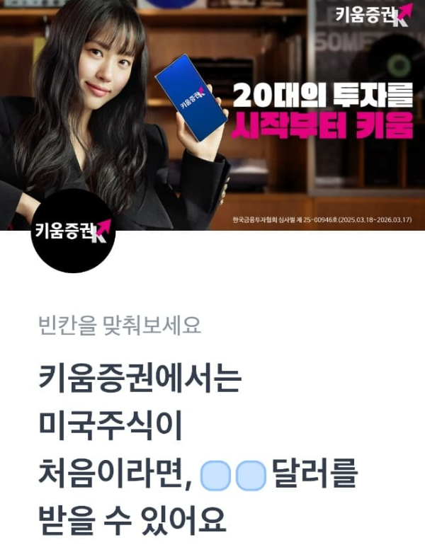문제 : 키움증권에서는 미국주식이 처음이라면, ㅇㅇ달러를 받을 수 있어요.