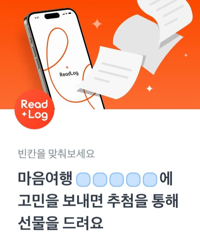 문제 : 마음여행 ㅇㅇㅇㅇㅇ에 고민을 보내면 추첨을 통해 선물을 드려요.