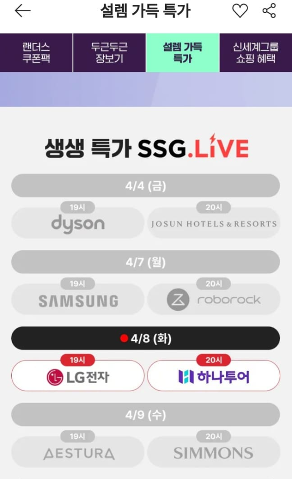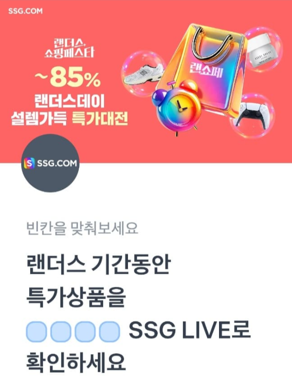 문제 : 랜더스 기간동안 특가상품을 ㅇㅇㅇㅇSSG LIVE로 확인하세요