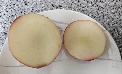 겉모습은 천도복숭아와 비슷하지만 잘라보면 속살이 백도처럼 하얀색이죠.
