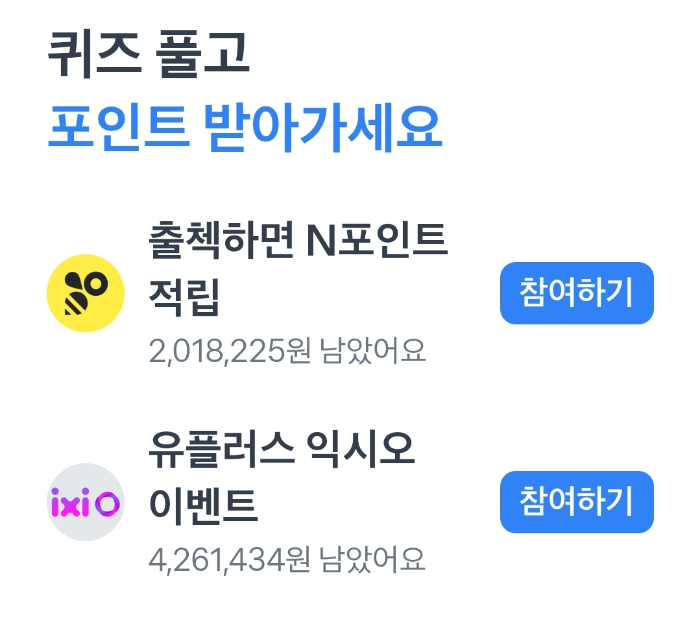 퀴즈맞히고 토스 포인트도 받고 출석체크하고 네이버포인트도 모으고 너무 좋은데요.