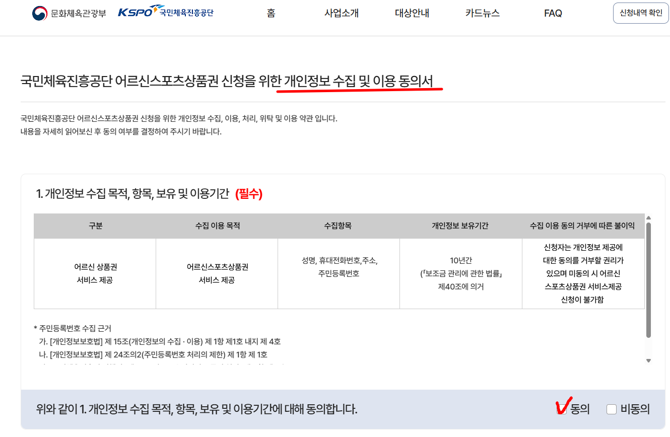 개인정보 수집 및 이용 동의서에 전체 '동의'를 체크하고 확인 눌러주세요.