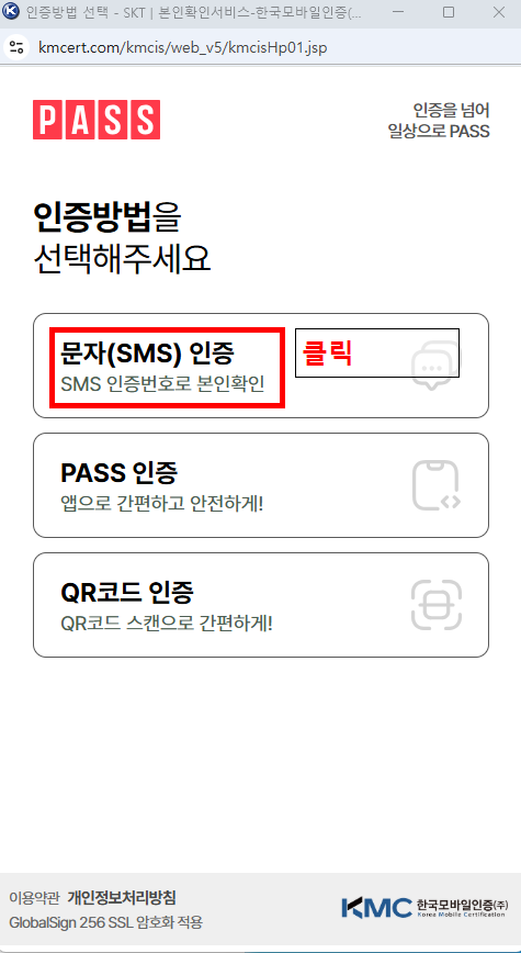 문자인증은 PASS를 이용하는데요 이용하고 있는 통신사를 선택하고 문자인증을 누르고 이름과 주민번호 앞자리 그리고 전화번호를 입력하면 6자리 숫자의 인증번호가 오게 되고 인증번호를 입력하면 됩니다.