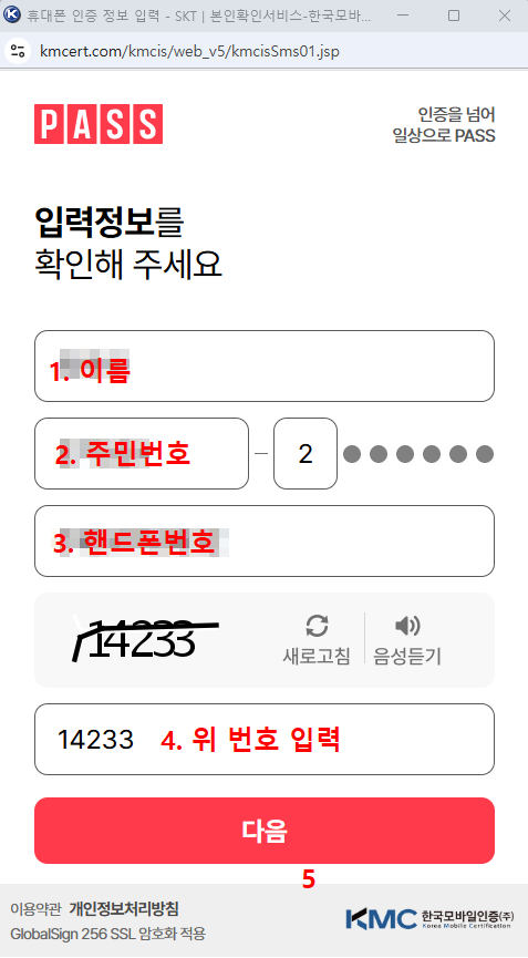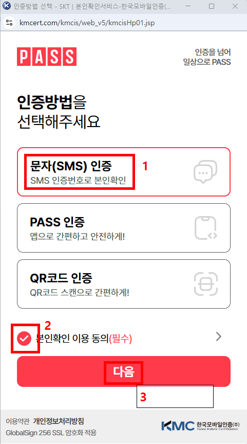 문자인증은 PASS를 이용하는데요 이용하고 있는 통신사를 선택하고 문자인증을 누르고 이름과 주민번호 앞자리 그리고 전화번호를 입력하면 6자리 숫자의 인증번호가 오게 되고 인증번호를 입력하면 됩니다.