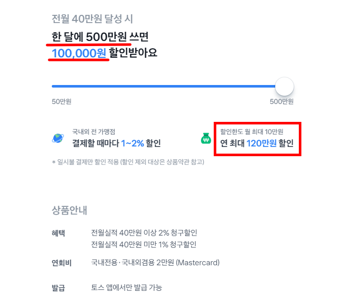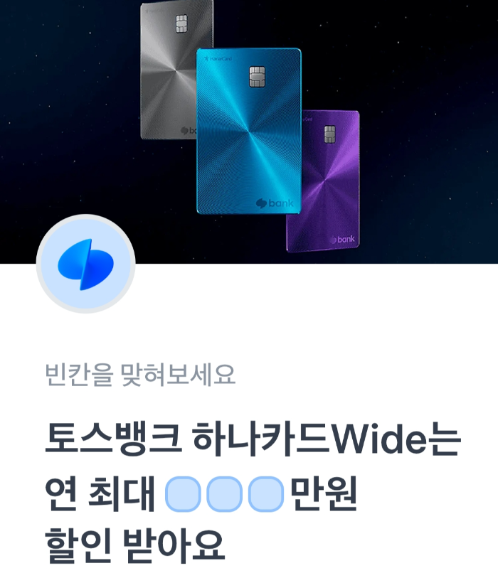 문제 : 토스뱅트 하나카드 Wide는 연 최대 ㅇㅇㅇ만원 할인 받아요.