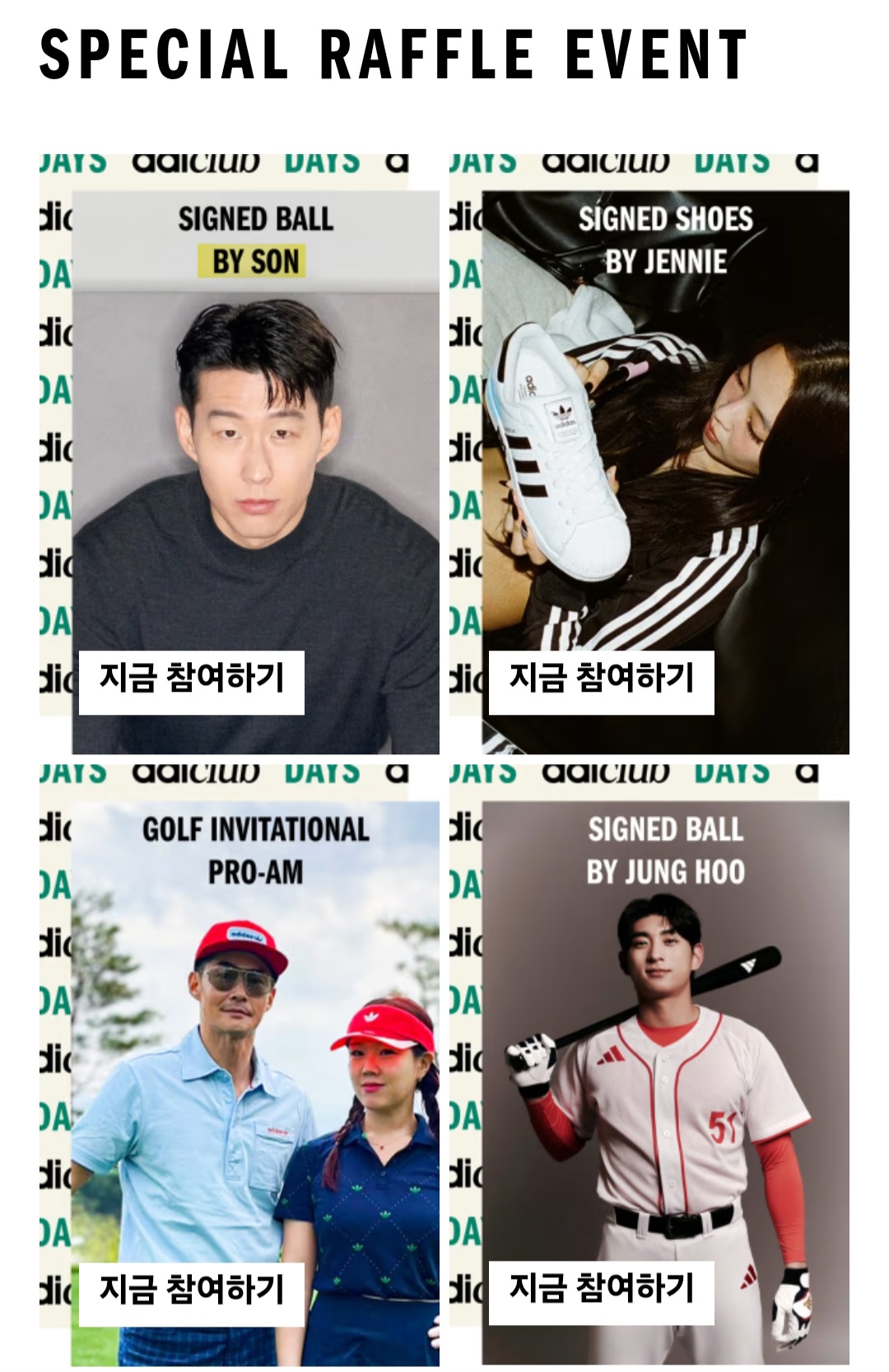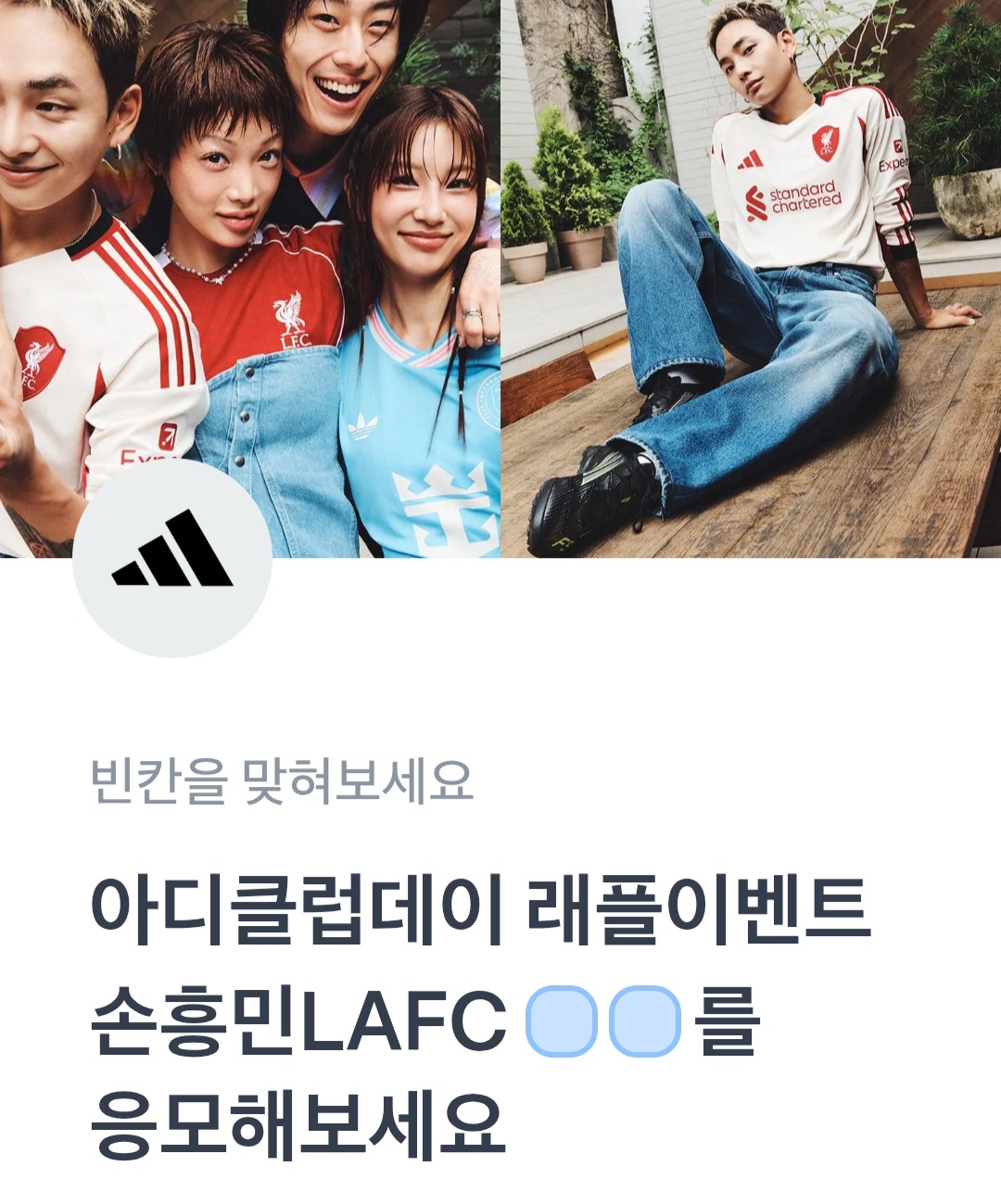 문제 : 아디클럽데이 래플이벤트 손흥민LAFCㅇㅇ를 응모해보세요.