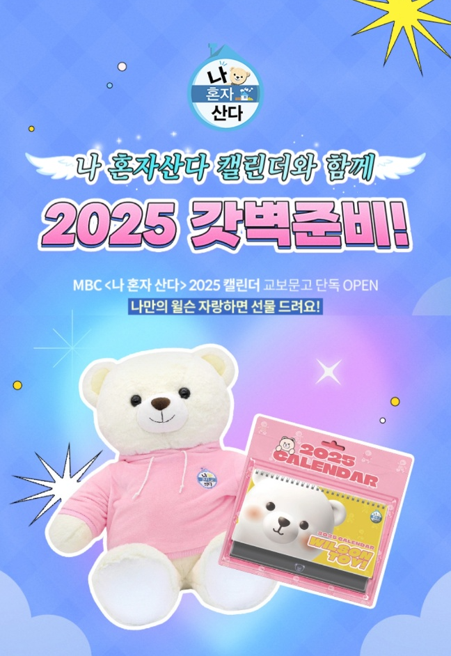 MBC 예능 프로그램 '나 혼자 산다'의 2025년 달력이 출시되었습니다. 2025년 달력은 '윌슨 토이' 콘셉트로 꾸며지며 무지개 회원들이 장난감 패키지 형태로 디자인되어 소장 가치를 높였다고 합니다. 교보문고에서 단독 OPEN 하는 캘린더와 이벤트 구경하러 가 보실까요.