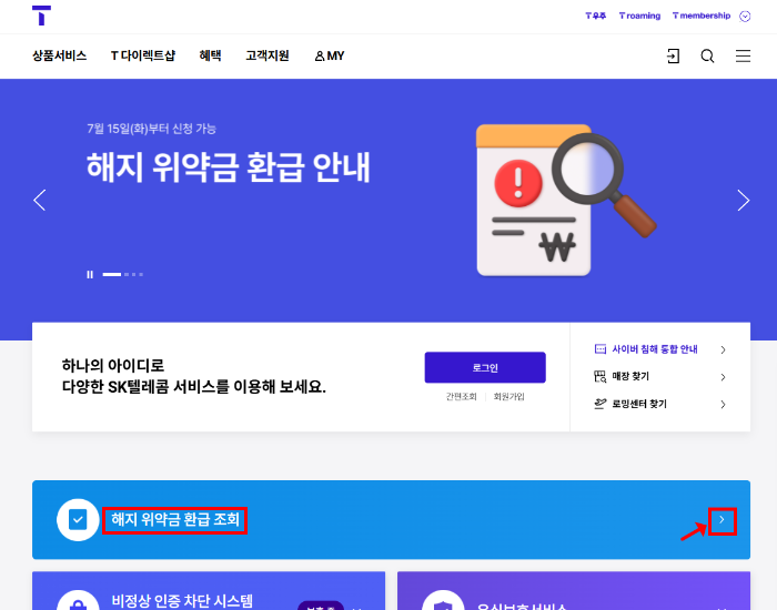 - T월드 → 해지위약금조회/환급신청 → 아래 사진의 순서대로 본인 인증하기 → 완료