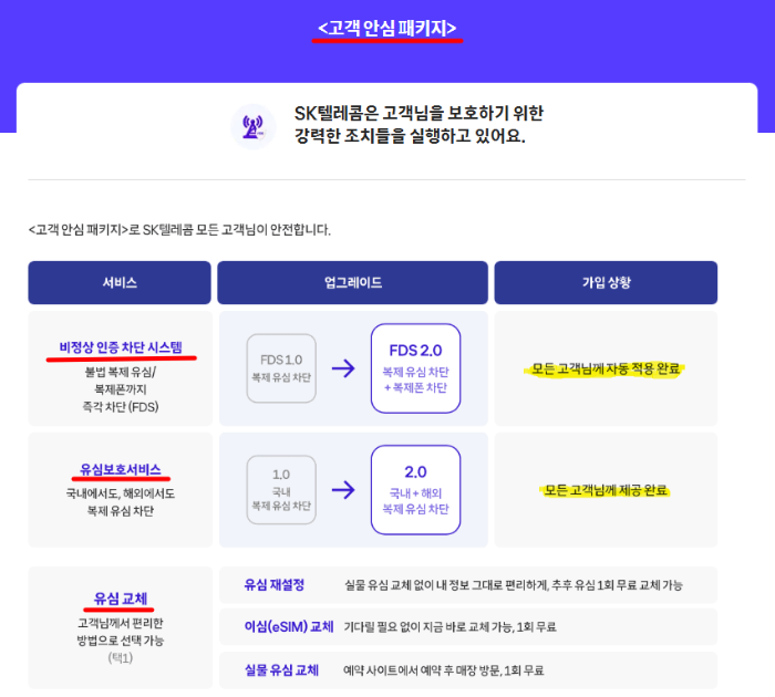 • SK텔레콤 모든 고객에게 비정상인증 차단 시스템과 유심보호서비스 제공