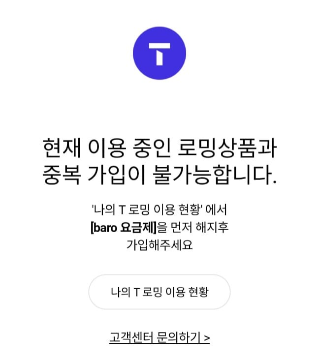신청 전 로밍서비스를 받고 계신다면 로밍서비스를 먼저 해지하셔야 합니다. 전 계속 안되길래 확인해 보니 작년에 태국여행 갈 때 아이랑 같이 로밍서비스를 받는다고 baro 요금제 가입이 되어있더라고요. 그래서 바로 해지했더니 신청이 되네요.